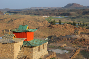 Ongi Monastery is the collective name for the ruins of two monasteries that face each other across the Ongi River in Saikhan-Ovoo district of Dundgovi Province, in south-central Mongolia. The Barlim Monastery is located on the north bank of the river while the Khutagt Monastery sits on the south bank. The older southern complex consisted of various administrative buildings as well as 11 temples. The northern complex, built in the 18th century, consisted of 17 temples - among them one of the largest temples in all of Mongolia. The grounds housed also 4 Buddhist universities. Founded in 1660, it was one of the largest monasteries in Mongolia and housed over 1000 monks at its height. The ruins are situated about 18 km south ofthe town of Saikhan Ovoo.